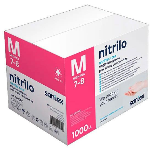 Guante nitrilo sin polvo rosa Santex Nitriflex (10 x 100 unid.)