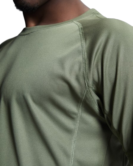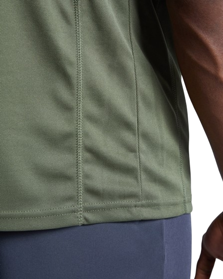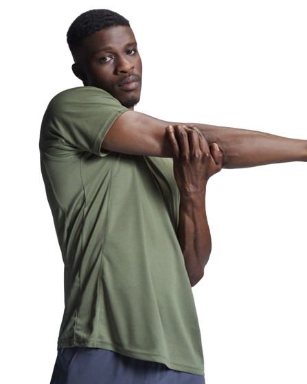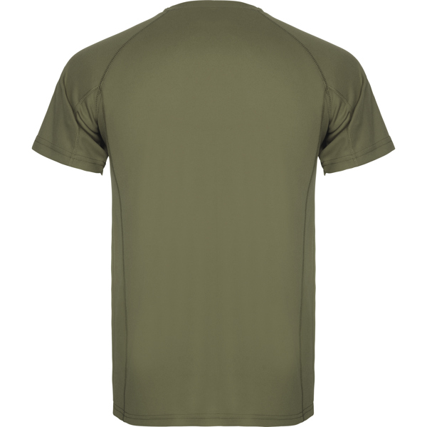 Camiseta técnica de manga corta de poliéster. Escote redondeado con cubrecosturas. Cortes laterales con remallado al tono.