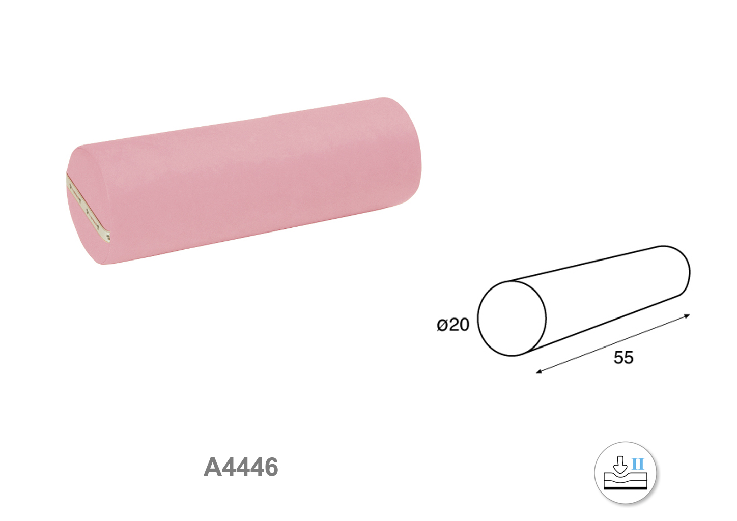 Cojín de polipiel con forma cilíndrica de 20 cm de diámetro y 55 cm de largo.  Grado de firmeza media.