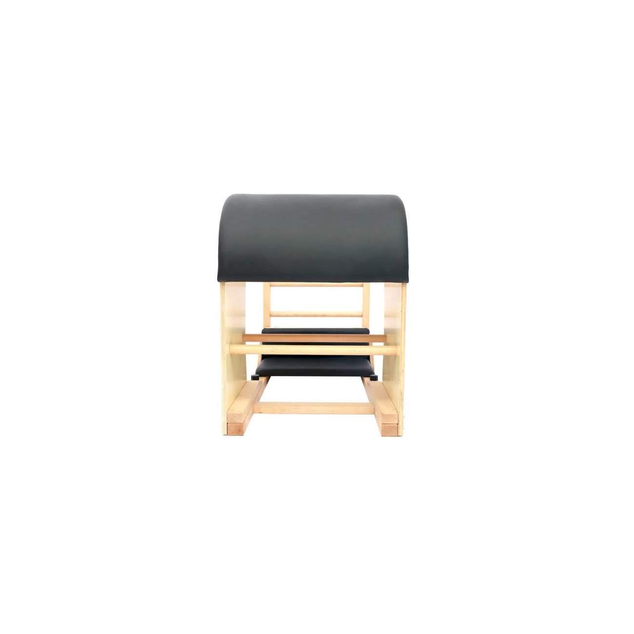 Ladder Barrel de madera. Cubierto de cuero sintético antideslizante y resistente. Incluye plataformas adicionales acolchadas (tablas para apoyar los pies) que permiten realizar una gama más amplia de ejercicios y jugar con diferentes alturas de trabajo.