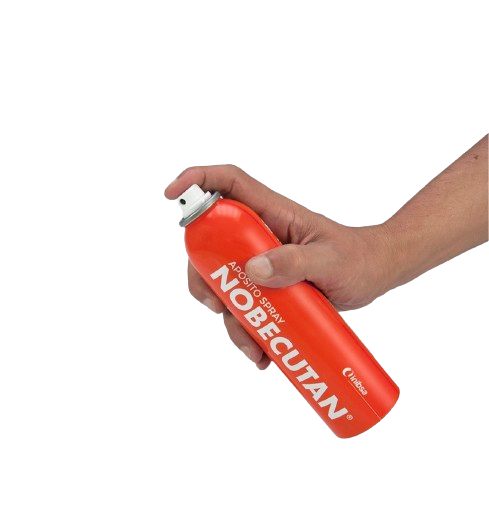 Apósito plástico en spray para el recubrimiento de heridas, limpias y secas, forma una delgada película adherente, elástica, transparente e, impermeable sobre la piel. Permite la aplicación repetida en capas sobre la misma zona.  Al ser adherente en los primeros instantes de su aplicación permite su uso a modo de fijador.